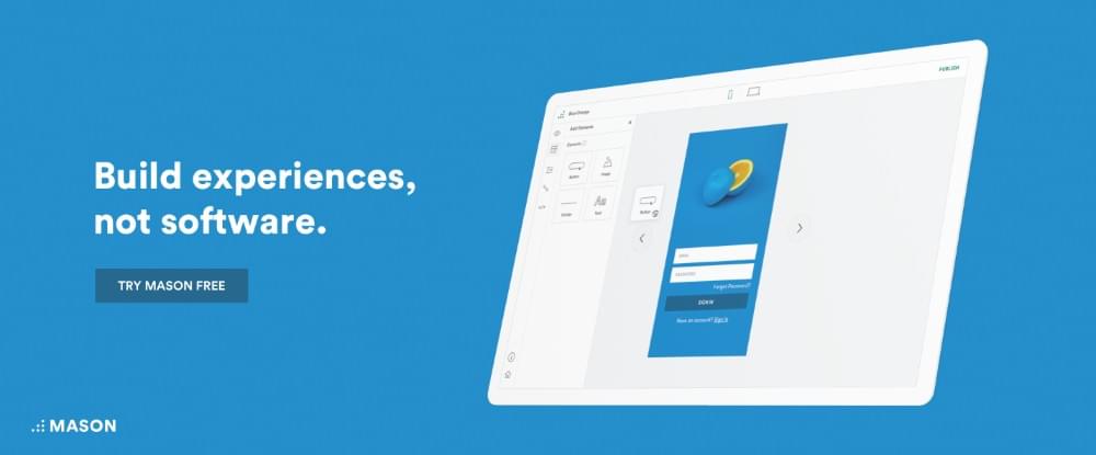 Mason has a better way. With this powerful tool, you can create, manipulate, and deploy web and mobile features at a building block level—all without a single line of code. Mason's simple visual interface enables you to design real software and digital features without having to rely on creating mockups or prototypes to hand off to production. Connect your API endpoints, drop the Mason-generated code into your app codebase, and boom: you're live.