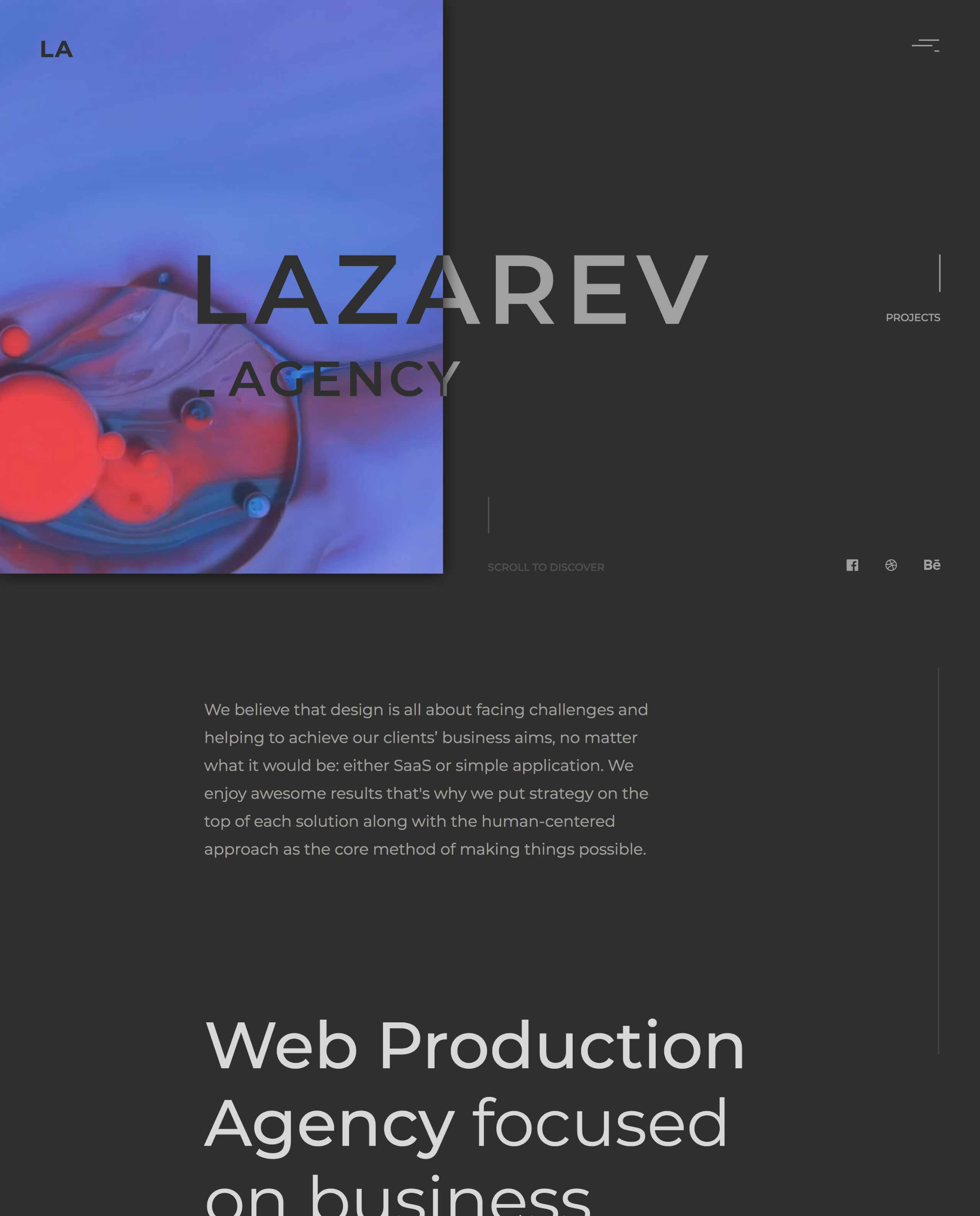Parallax scrolling One Pager with smooth load transitions as you scroll for Lazarev Agency.